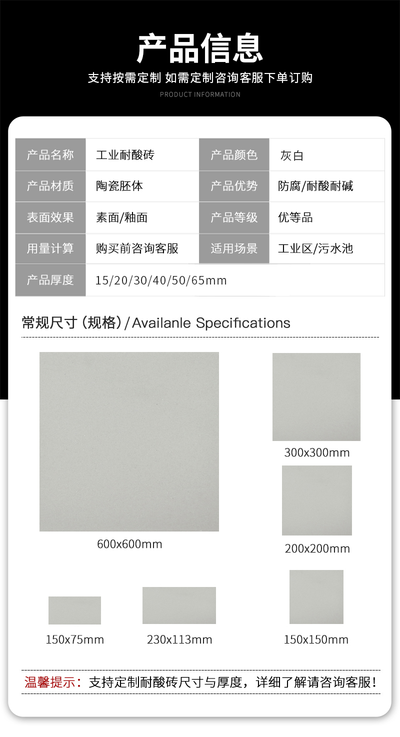 40厚的耐酸磚都有哪些規(guī)格